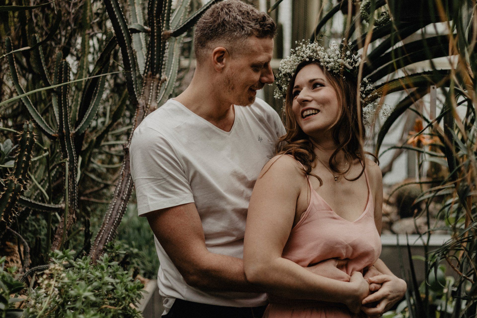 Die beiden haben das wundervoll gemacht und die Zeit zu zweit auch sichtlich genossen. Entspannt ging es von Gewächshaus zu Gewächshaus. Ich konnte tolle neue Sachen ausprobieren und auch einiges lernen, da es schon eine Herausforderung sein kann bei hohen Temperaturen und hoher Luftfeuchtigkeit zu fotografieren. Ein wirklich spannendes Shooting mit zauberhaften Ergebnissen. Fazit: Neben den üblichen Outdoor-Locations gibt es auch indoor unzählige Möglichkeiten für Shootings.